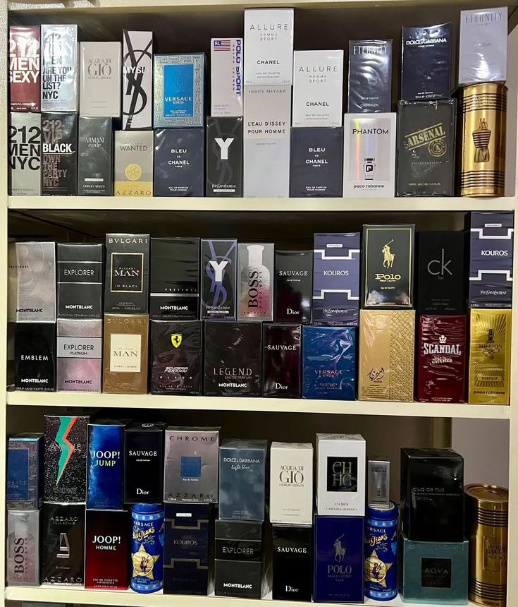 3 perfumes (Dylan Blue - 9 pm - Yves Saint Laurent EDP) + 1 perfumero -